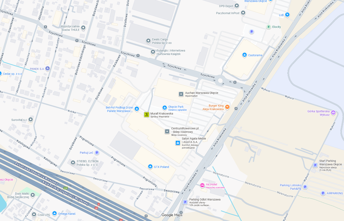 Okęcie Park znajduje się tuż przy Lotnisku Chopina, w pobliżu głównych tras – Alei Krakowskiej i południowej obwodnicy S2. Dzięki temu dojazd samochodem lub komunikacją miejską jest szybki i wygodny z każdego zakątka Warszawy i okolic.